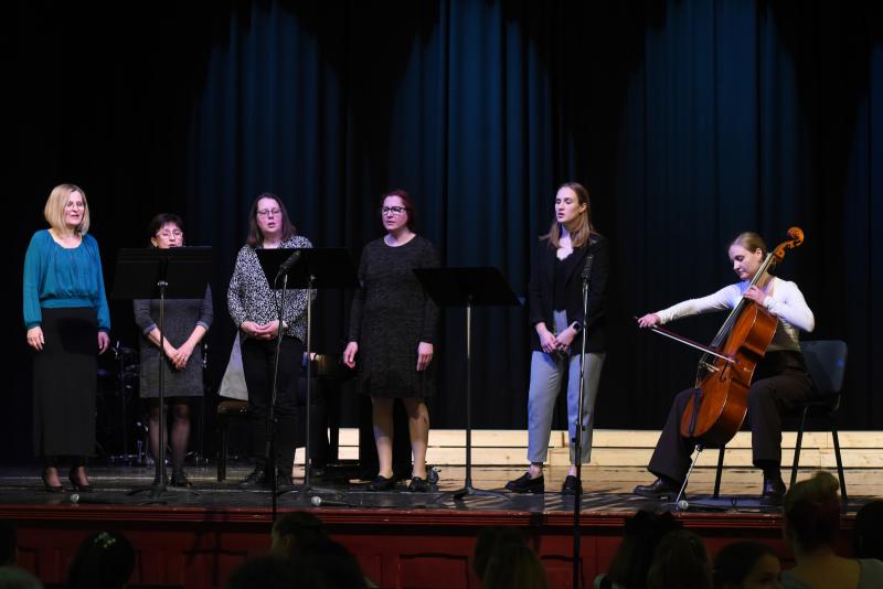 A gyermekkórus mellett az intézmény női kara is megörvendeztette a hallgatóságot két darabbal. A jókívánságokat közvetítő Ír áldás mellett megszólalt Menegali: „Jézus, bűnbánat útja” című műve, melyet nem lehet „lélekérintés” nélkül énekelni, hallgatni…